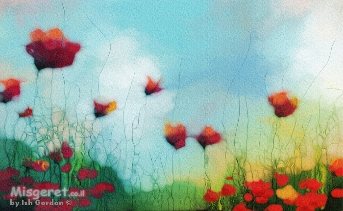 יצירתו המרהיבה של איש גורדון, 'חגיגה בשדה', מציפה את החלל בתחושת רוגע ושלווה. הקומפוזיציה המיוחדת של פרחי הפרגים האדומים והעדינים בשדה הפתוח מזכירה לנו את היופי שבפשטות הטבע. התמונה מעוררת נוסטלגיה ופסטורליות, ומאפשרת להתנתק מהשגרה ולהתמסר לרגעי השלווה שהיא מציעה.