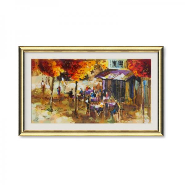 - היצירה מגיעה עם פספרטו (שוליים) ברוחב 5 ס"מ בצבע לבן או קרם ומצופה בזכוכית שקופה להגנה.