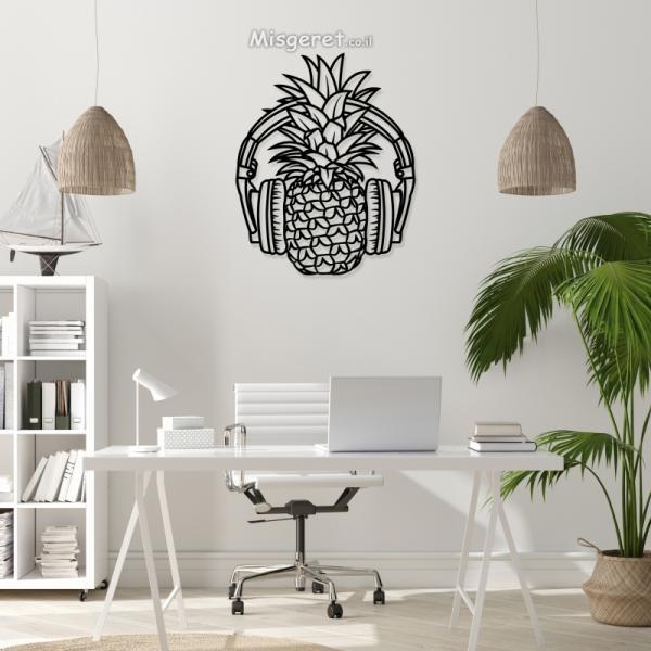 תמונת מתכת אננס עם אוזניות בעיצוב מודרני לסלון, לפינת אוכל, לבית, למטבח או למשרד.