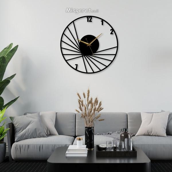 שעון קיר עגול מודרני קווים ממתכת בעיצוב מודרני לסלון, לפינת אוכל, לבית, למטבח או למשרד.