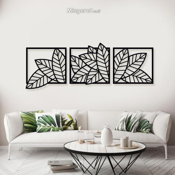 סט 3 תמונות מתכת עלים טרופי בעיצוב מודרני נורדי לסלון, לפינת אוכל, לבית, למטבח או למשרד.