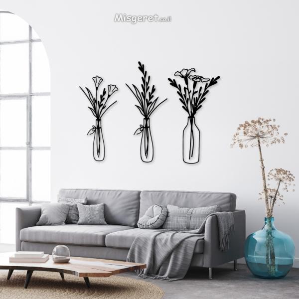 שלישית תמונות מתכת אגרטלי פרחים בעיצוב מודרני לפינת אוכל, סלון, חדר שינה, משרד, חדר ילדים או למטבח.
