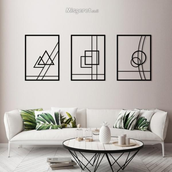 שלישית תמונות מתכת צורות גאומטריות במרחב בעיצוב מודרני לפינת אוכל, סלון, חדר שינה, משרד, חדר ילדים או למטבח.