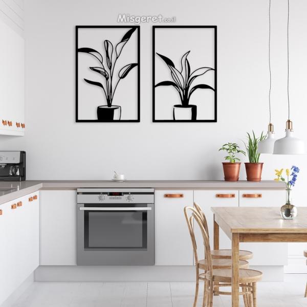 זוג תמונות מתכת צמחים בעיצוב מודרני לפינת אוכל, סלון, חדר שינה, משרד, חדר ילדים או למטבח.