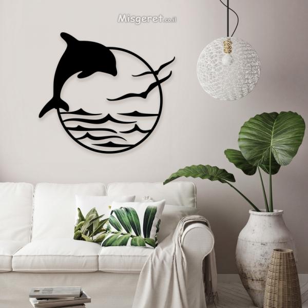 תמונת מתכת עגולה דולפין ושחפים