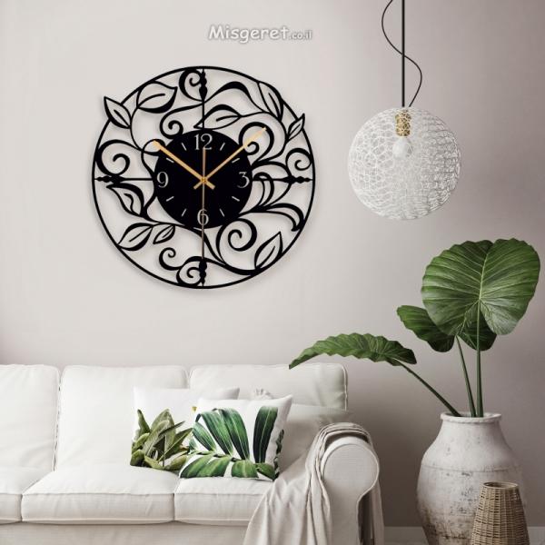שעון קיר עגול עלים אלגנטי