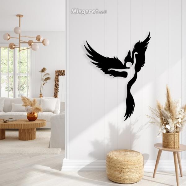 תמונת מתכת אישה ציפור בעיצוב מודרני נורדי לסלון, לפינת אוכל, לבית, למטבח או למשרד.