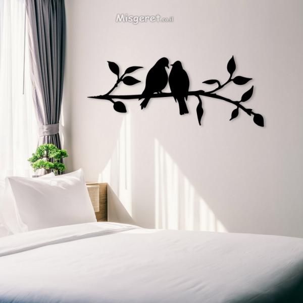 תמונת ברזל זוג ציפורי אהבה על ענף בעיצוב מודרני נורדי לסלון, לפינת אוכל, לבית, למטבח או למשרד.