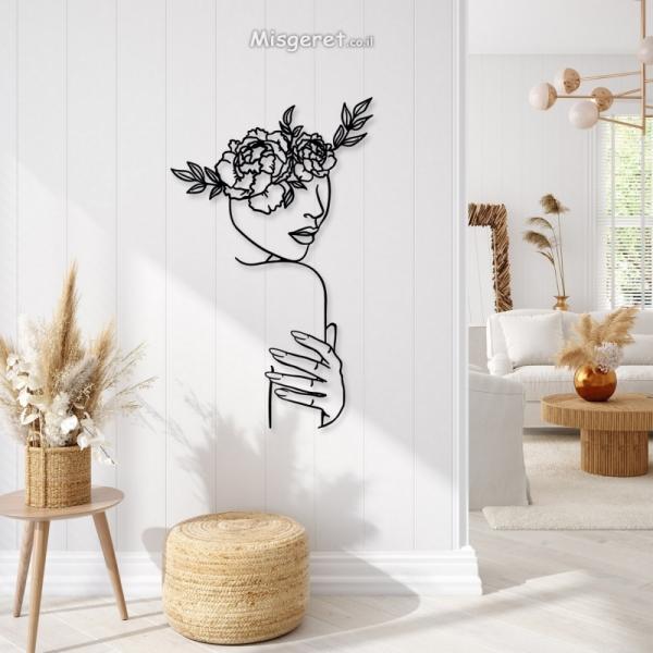 תמונת ברזל אישה עם ראש פרחים בקו מינימליסטי בעיצוב מודרני נורדי לסלון, לפינת אוכל, לבית, למטבח או למשרד.