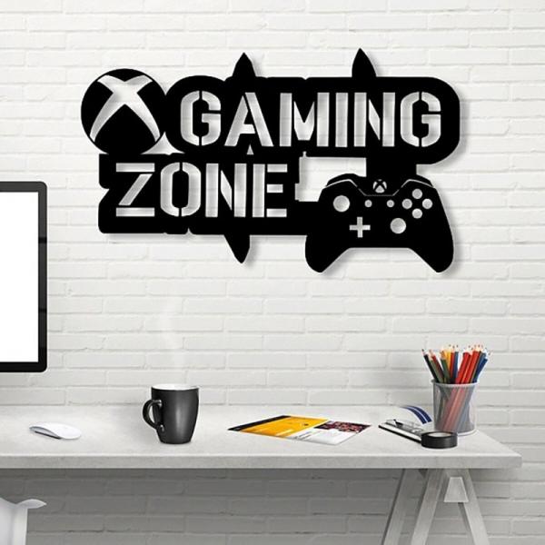 תמונת מתכת אזור גיימינג xbox אקס בוקס בעיצוב מודרני לחדר ילדים, חדר נוער או חדר משחקים.