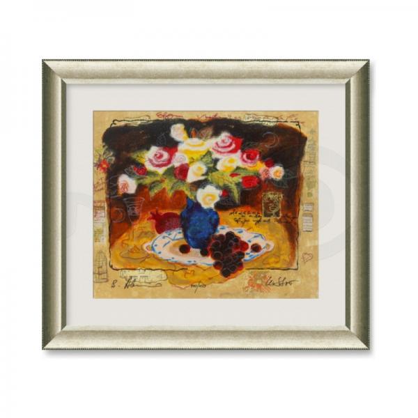 - היצירה מגיעה עם פספרטו (שוליים) ברוחב 5 ס"מ בצבע לבן או קרם ומצופה בזכוכית שקופה להגנה.