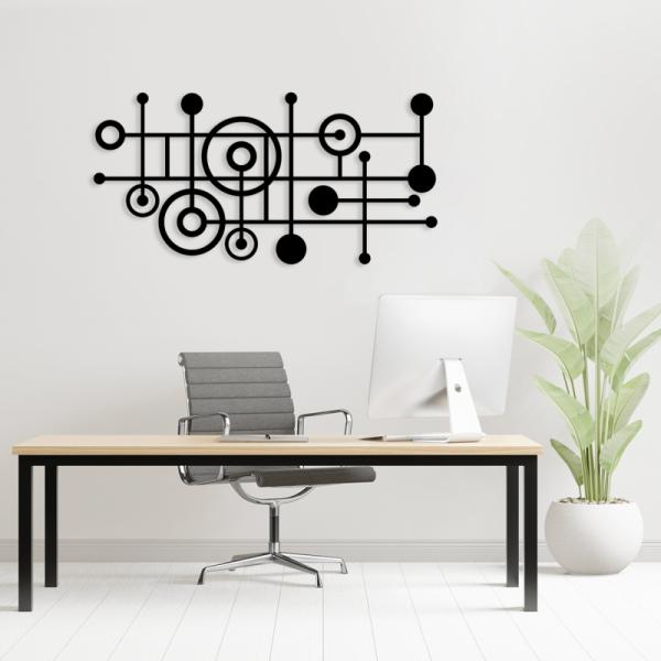 תמונת מתכת עיגולים וקווים בעיצוב מודרני לפינת אוכל, סלון, חדר שינה, משרד, חדר ילדים או למטבח.