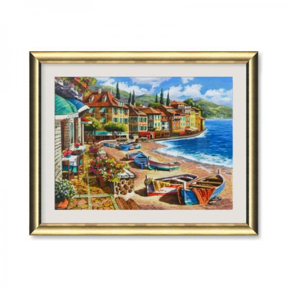 - היצירה מגיעה עם פספרטו (שוליים) ברוחב 5 ס"מ בצבע לבן או קרם ומצופה בזכוכית שקופה להגנה.