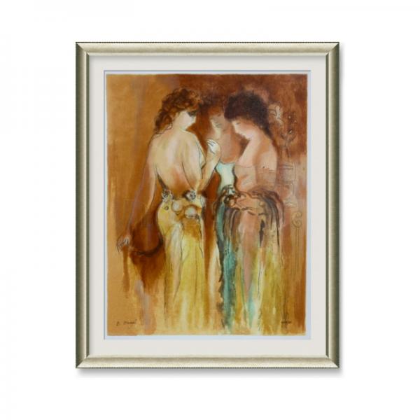 - היצירה מגיעה עם פספרטו (שוליים) ברוחב 5 ס"מ בצבע לבן או קרם ומצופה בזכוכית שקופה להגנה.