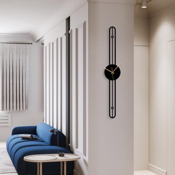 שעון קיר אנכי אקורדים III מעוצב ממתכת בעיצוב מודרני לסלון, לפינת אוכל, לבית, למטבח או למשרד.