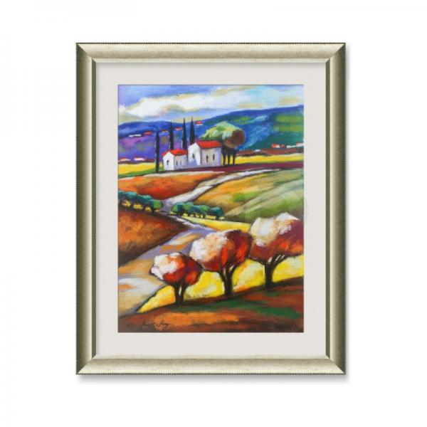 - היצירה מגיעה עם פספרטו (שוליים) ברוחב 5 ס"מ בצבע לבן או קרם ומצופה בזכוכית שקופה להגנה.