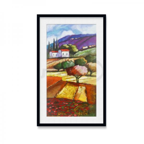 - היצירה מגיעה עם פספרטו (שוליים) ברוחב 5 ס"מ בצבע לבן או קרם ומצופה בזכוכית שקופה להגנה.