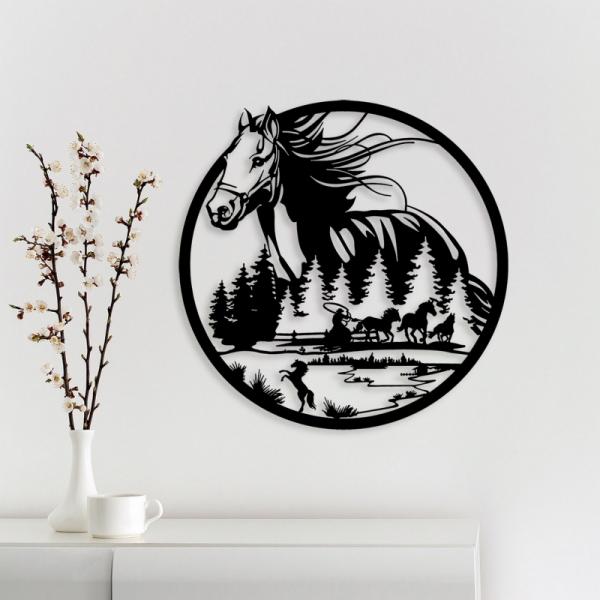 תמונת מתכת חוות סוסים בעיצוב מודרני נורדי לסלון, לפינת אוכל, לבית, למטבח או למשרד.