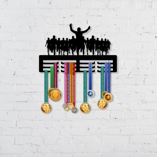 מתקן לתליית מדליות - ריצה Win בעיצוב מודרני ומיוחד. זה המקום לשמור את כל המדליות שלכם ולהציג אותן במקום בולט שיזכיר לכם כל יום למה עבדתם כל כך קשה.