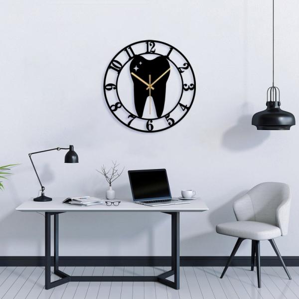 שעון קיר עגול שן נוצצת בעיצוב מודרני לחדרי ילדים, מרפאות שיניים, חדר רחצה, אמבטיה ועוד.