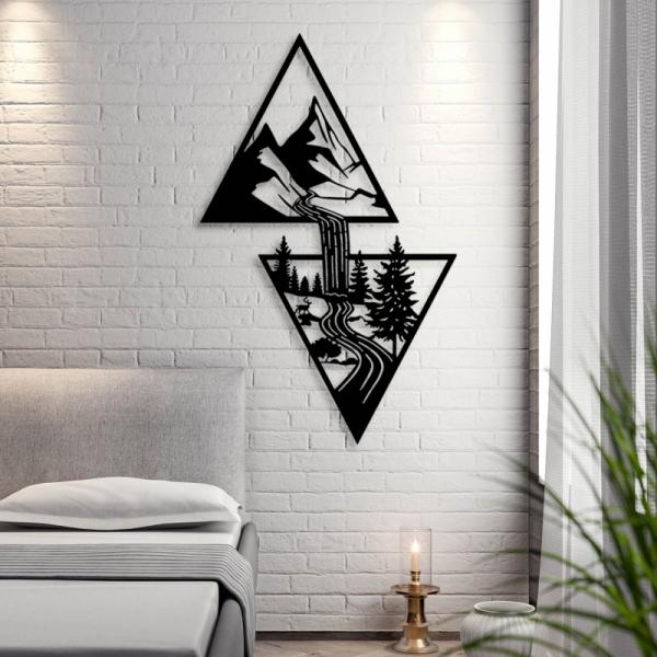 תמונת מתכת נוף הרים ומי נהר זורמים בעיצוב מודרני נורדי לסלון, לפינת אוכל, לבית, למטבח או למשרד.
