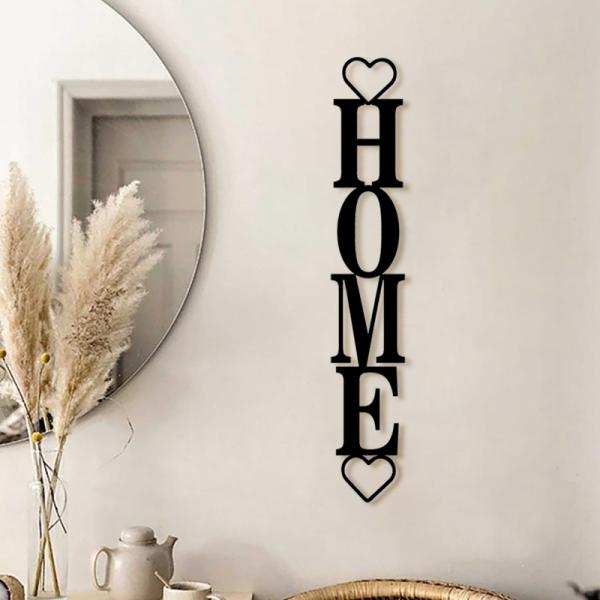 תמונת מתכת הום אנכי עם לבבות (Home) מעוצבת מדהימה. מתאים לתליה בכניסה לבית, בפינת אוכל, במטבח או בכל מקום שיזכיר לכם מה חשוב באמת בבית.