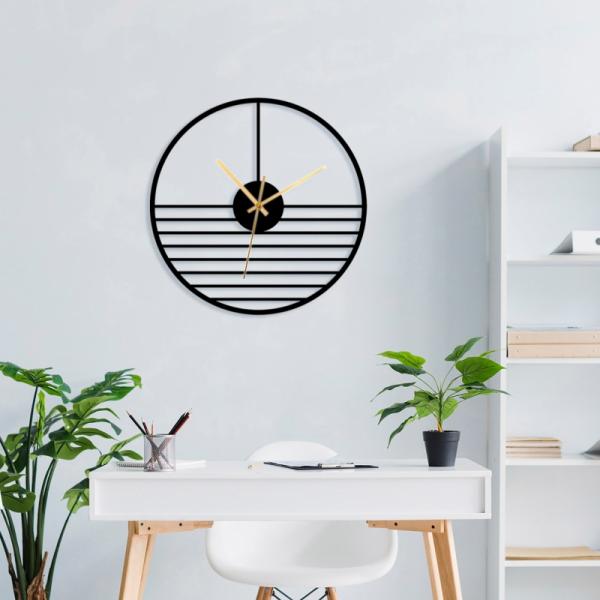 שעון קיר עגול פסים ממתכת בעיצוב מודרני לסלון, לפינת אוכל, לבית, למטבח או למשרד.