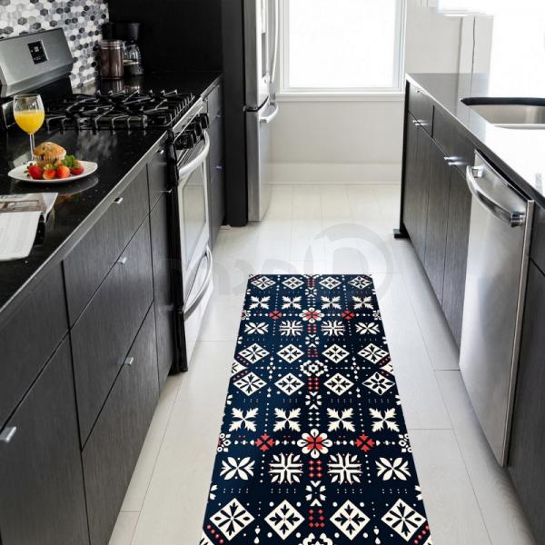 דגם זה בגווני שחור, לבן ואדום עם עיצוב גיאומטרי מושך עין יעניק למטבח שלך מראה נועז ומודרני. השטיחים שלנו מעוצבים במחשבה על נוחות ועמידות, ומתאימים לכל מי שמחפש לשלב עיצוב מתוחכם עם פרקטיות.
