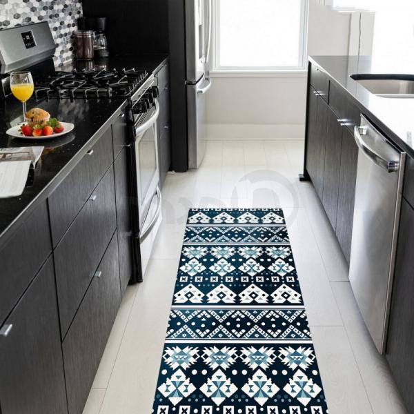 דגם זה בגווני שחור ותכלת עם עיצוב אתני מרשים יעניק למטבח שלך מראה ייחודי ומסתורי. השטיחים שלנו מעוצבים במחשבה על נוחות ועמידות, ומתאימים לכל מי שמחפש לשלב עיצוב תרבותי עם פרקטיות.