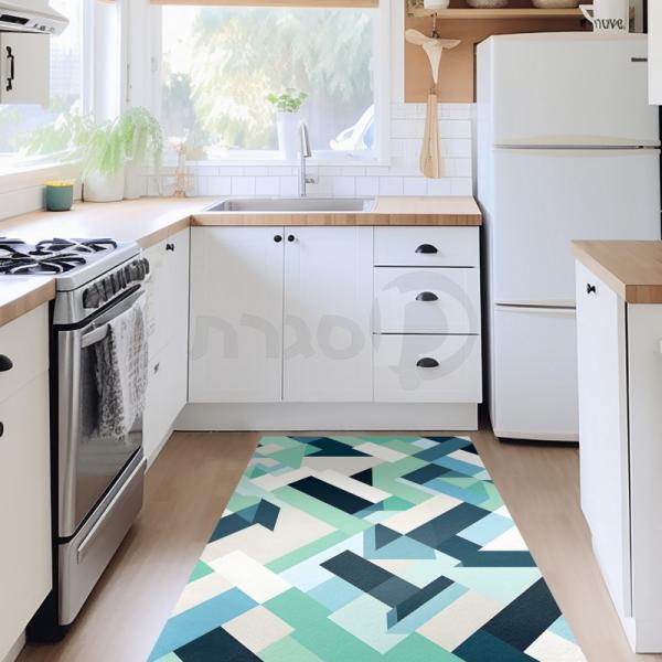דגם זה בגווני תכלת וירוק עם עיצוב גיאומטרי ייחודי יעניק למטבח שלך מראה מרענן ועדכני. השטיחים שלנו מעוצבים במחשבה על נוחות ועמידות, ומתאימים לכל מי שמחפש לשלב עיצוב מודרני עם פרקטיות.
