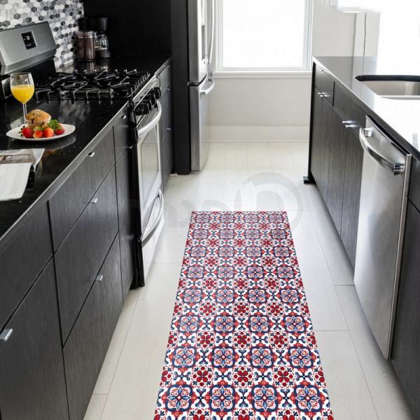 דגם זה בגווני כחול ואדום עם עיצוב פרחוני מסורתי יעניק למטבח שלך מראה קלאסי ונוסטלגי. השטיחים שלנו מעוצבים במחשבה על נוחות ועמידות, ומתאימים לכל מי שמחפש לשלב עיצוב מסורתי עם פרקטיות.