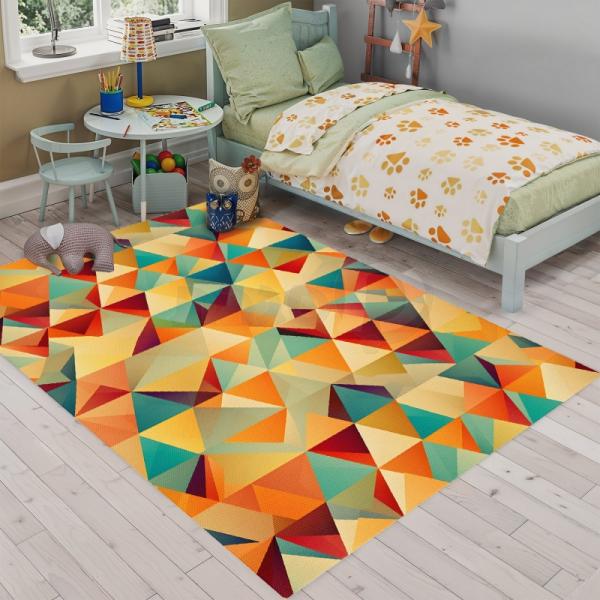 דגם זה עם משולשים צבעוניים בגוונים חמים יעניק לחדר הילדים מראה דינמי ומלא חיים. השטיחים שלנו מעוצבים במחשבה על נוחות ועמידות, ומתאימים לכל מי שמחפש לשלב עיצוב אנרגטי עם פרקטיות.