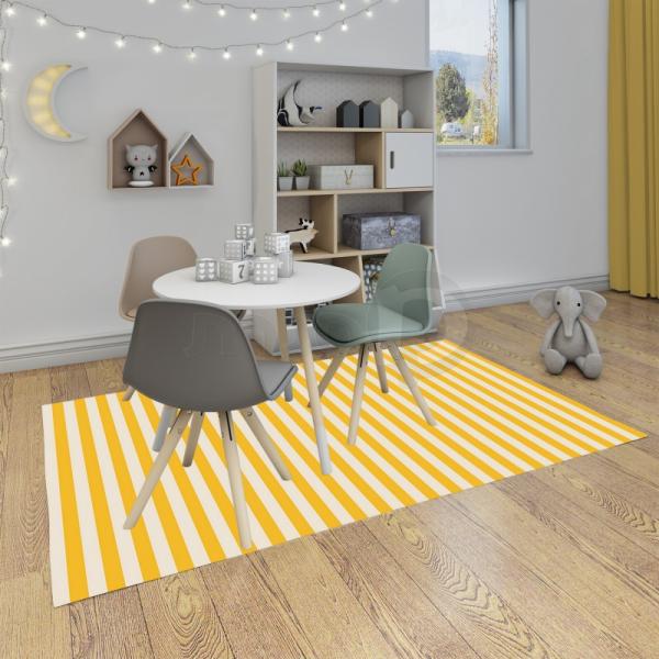 שטיח לחדר ילדים פי וי סי פסים צהוב-לבן - תמונה 4