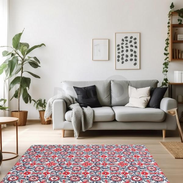 שטיח פי וי סי לסלון עם דוגמת פרחים מרהיבה בגווני אדום וכחול על רקע לבן. העיצוב הפרחוני הנועז מביא אנרגיה וחיוניות לכל חלל סלון. השטיח עמיד, קל לניקוי ומתאים במיוחד למי שמחפש לשדרג את עיצוב הפנים במראה מודרני ודינמי. שילוב מושלם של אסתטיקה ופרקטיות לכל בית.
