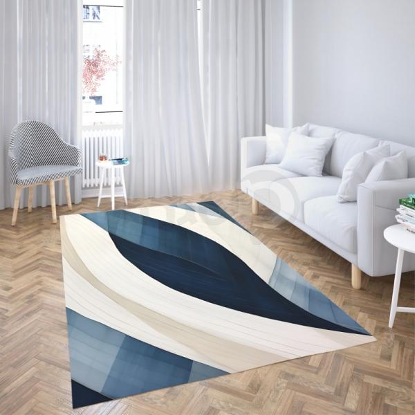 שטיח פי וי סי לסלון עם עיצוב מרהיב של גלים בגווני כחול ולבן. השטיח מוסיף נופך של תנועה ורוגע לחלל, ומשדר תחושת ים ורוח. קל לניקוי, עמיד בפני כתמים ומים, ומתאים לכל מי שמחפש לשלב יופי ופרקטיות בעיצוב הסלון. אידיאלי להוספת מראה מודרני ונעים לבית.