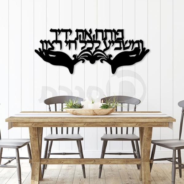 תמונת מתכת פותח את ידיך ומשביע לכל חי רצון בעיצוב מדהים! מתאים לפינת אוכל, משרד, סלון.