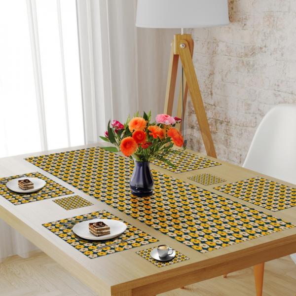 סט פלייסמנט - ראנר פרחוני צהוב כחול - תמונה 1