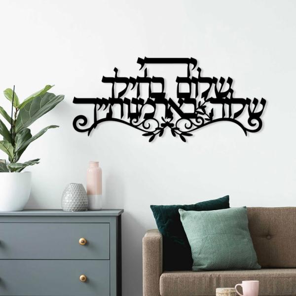 תמונת מתכת יהי שלום בחילך שלוה בארמנותיך בעיצוב מדהים! מתאים לפינת אוכל, משרד, סלון.