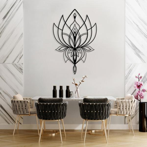 תמונת מתכת פרח לוטוס אלגנטי בעיצוב מודרני נורדי לסלון, לפינת אוכל, לבית, למטבח או למשרד.