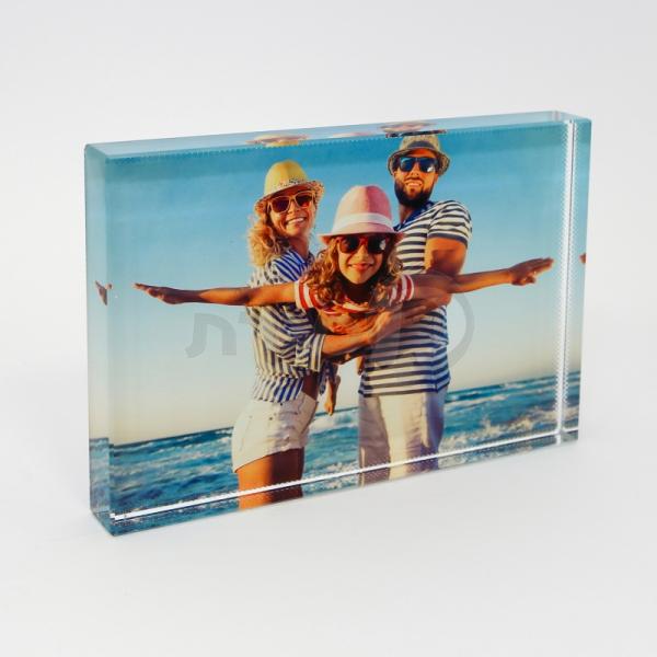בלוק זכוכית בגודל 13/18 ס"מ, עם הדפסה איכותית שמשלבת את הזיכרונות היפים שלכם בעומק ובברק בלתי נשכחים. הזכוכית השקופה והמעוצבת יוצרת אפקט תלת-ממדי שמבליט את הפרטים בתמונה בצורה מרשימה, והופכת אותה לפריט דקורטיבי יוקרתי ומרגש.