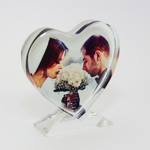בלוק זכוכית ייחודי בגודל 10/9.5 ס"מ, מעוצב בצורת לב מרהיב עם מעמד תואם, מושלם להדפסת הרגעים היפים ביותר שלכם. ההדפסה על הזכוכית יוצרת אפקט יוקרתי ותלת-ממדי, שמעניק לתמונה מראה עמוק ומלא חיים. זוהי לא רק תמונה – זו יצירת אמנות שמספרת סיפור מרגש בכל מבט.