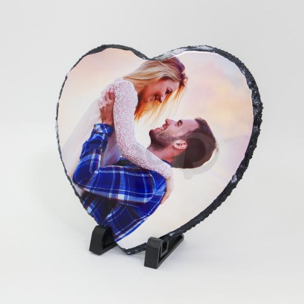 הנציחו את הרגעים היקרים לכם על גבי אבן בזלת טבעית בצורת לב בגודל 20/20 ס"מ, המגיעה עם מעמד תואם להצבה יציבה ומעוצבת. האבן בצורה הרומנטית מוסיפה לתמונה נגיעה אישית ומלאת רגש.