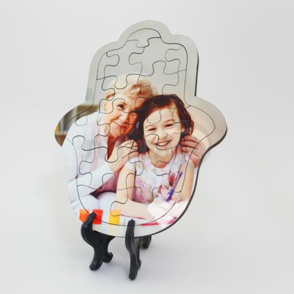 הדפסה על פאזל בצורת חמסה עם מעמד – חוויה מסורתית ומרגשת