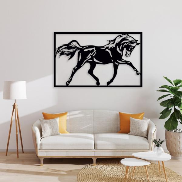 תמונת מתכת סוס דוהר בעיצוב מודרני נורדי לסלון, לפינת אוכל, לבית, למטבח או למשרד.