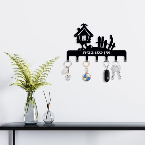 מתלה "אין כמו בבית" מעוצב ממתכת בעיצוב קלאסי-מודרני בסגנון נורדי, מושלם לכניסה, למטבח, לחדר ילדים או למשרד. גם פרקטי, גם מעוצב – מוסיף אופי, סדר וחום לכל חלל.
