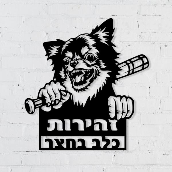 שלט מתכת "זהירות כלב בחצר" עם איור צ'יוואווה – שילוב של אזהרה ברורה עם עיצוב מרשים. עשוי ממתכת איכותית ועמידה לתנאי חוץ, מתאים לשערים, גדרות וכניסות לבתים פרטיים. פתרון פרקטי עם נוכחות שלא מתפשרת על סטייל.