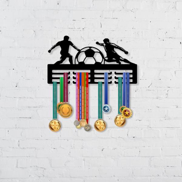 מתקן לתליית מדליות כדורגל בעיצוב מודרני ומיוחד. זה המקום לשמור את כל המדליות שלכם ולהציג אותן במקום בולט שיזכיר לכם כל יום למה עבדתם כל כך קשה.