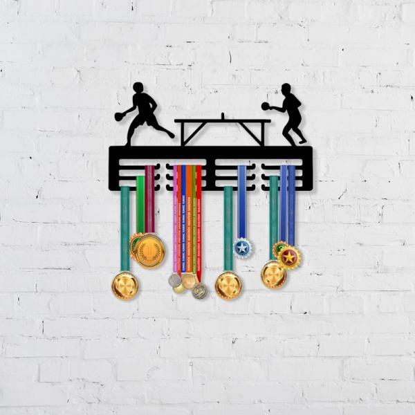 מתקן לתליית מדליות טניס שולחן בעיצוב מודרני ומיוחד. זה המקום לשמור את כל המדליות שלכם ולהציג אותן במקום בולט שיזכיר לכם כל יום למה עבדתם כל כך קשה.