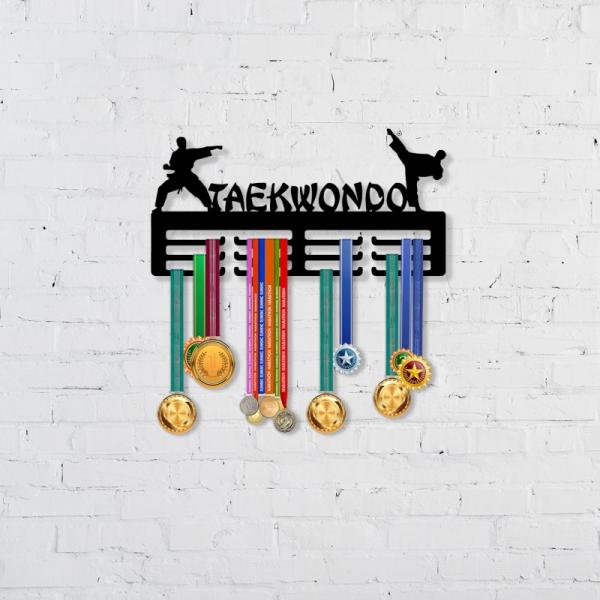 מתקן לתליית מדליות טאקוונדו בעיצוב מודרני ומיוחד. זה המקום לשמור את כל המדליות שלכם ולהציג אותן במקום בולט שיזכיר לכם כל יום למה עבדתם כל כך קשה.