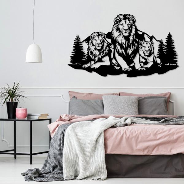 תמונת מתכת שלושת האריות בעיצוב מודרני נורדי לסלון, לפינת אוכל, לבית, למטבח או למשרד.